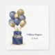 These modern 90th birthday party luncheon napkins featuring a 2-layer navy blue and gold cake with navy blue and gold balloons, the number 90 in gold and the guest of honour's name and the party date would be perfect for celebrating your husband,brother, dad, uncle, grandfather, great grandfather, friend. They are traditional and classic while being fresh, modern and contemporary. They will look fabulous on your counters, buffet and tables.