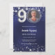 90th birthday navy blue silver stars photo luxury invitation