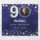 90th Birthday Navy Blue & Silver Stars Custom Photo Wine Label