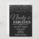90th Birthday invitation. Ninety and Fabulous. Black and Silver. Silver Glitter. Adult Birthday Party. For Men or Women. For further customisation, please click the "Customise it" button and use our design tool to modify this template.