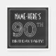 This stylish Roaring Twenties era inspired art deco style birthday-themed paper napkin design features a customisable name, and the message “90TH BIRTHDAY PARTY!”. The number “90TH” has a fancy geometric lined styling. Birthday themed paper napkins like these might be used at a party celebrating somebody’s ninetieth birthday, or some other 90th event. [~Z0000659]