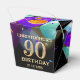 90th Birthday Party Black and Gold Colourful Balloons and Confetti Favour Box. For further customisation, please click the "Customise it" button and use our design tool to modify this template.