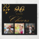 A bottle label for a glamourous 90th birthday party. Personalise and add 3 of your own photos, age 90 and a date. Date of birth or the date of the party. Golden coloured letters. The word: Cheers, in faux gold written with a trendy hand lettered style script. Elegant, classic chic black background colour, decorated with faux gold party streamers.