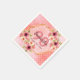 A trendy paper napkin for a 90th birthday party. With a faux gold hexagon geometrical shaped frame. Decorated with watercolored dahlia flowers in pink, cream and coral. Living coral with polka dots as background. Templates for a name, age 90 and a date. Date of birth or date of the party. Burgundy and coral coloured letters.