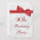 Womens' elegant 90th Birthday Party invitations. Woman's ninetieth / ninety years old birthday party invites. Beautiful white damask pattern background with a pretty, stylish red bow and ribbon image. These glamourous, chic, classy invites are beautifully sophisticated and are decorated / printed on both sides. PLEASE NOTE: All invites on Zazzle have flat printed images. Bow and ribbon images purchased from digital-designs-by-elena. If you need any assistance customising your invitation please contact me through my store and I will be happy to help.