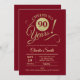 90th Birthday Party Invitation in dark red with faux glitter gold pattern. Features trendy typography script font. Simple modern design, perfect for an elegant party. Cheers to 90 years! Can be personalised into any age! Please message me if you need further customisation.