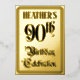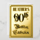 The front of this elaborate ninetieth birthday celebration foil invitation/announcement card design features the message “90th Birthday Celebration” in elegant script-style text. It also features a personalised name. The back features personalised details about the event, such as the date, time, place/venue, and any other information that may be relevant. Opulent, luxurious, editable invitations like these might be used to invite guests to a birthday party/celebration being held in celebration of somebody’s ninetieth birthday. [~Z0000596]