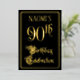 The front of this ornate and luxurious foil ninetieth birthday party/celebration invitation design features the message “90th Birthday Celebration” in elegant script-style text. It also has a customisable name. The background of the front is coloured black by default (although it can be customised to a different colour). The back features personalised details about the event, such as the date, time, location, and any other information that may be relevant. Elegant, fancy, customised invitations like these might be used to invite guests to a birthday party/celebration being held to honour somebody’s 90th birthday. [~Z0000589]