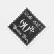 This ornate and elegant birthday-themed paper napkin design features an editable name and the message “90th Birthday Party”. The large number “90th” and the words “Birthday Party” are in luxurious script-style text. The background is coloured black by default (although it can be customised). Fancy, elegant paper napkins like this might be useful at a birthday celebration being held to honour somebody’s ninetieth birthday. [~Z0000563]