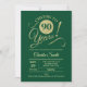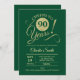 90th Birthday Party Invitation in dark emerald forest green with faux glitter gold pattern. Features trendy typography script font. Simple modern design, perfect for an elegant party. Cheers to 90 years! Can be personalized into any age! Please message me if you need further customization.