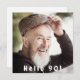 Template for your own photo. On front: White text overlay: Hello 90! The text is written with a modern hand lettered style script.