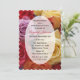 This roses for a 90th birthday party invitation is just beautiful. The design features a multi colour bouquet of roses in the background with a sheer looking white oval in the centre for all you party details. This elegant design is sure to please as the roses not only appear on the front, but also on the back and the invite has beautiful scalloped edges. Copyright henishouseofpaper
