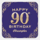 90th Birthday Party Navy Blue and Gold Glitter Square Sticker