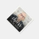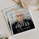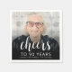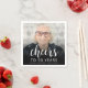 This custom 90th birthday napkin features the guest of honour's personalised photo, name, and birthday, along with the word "Cheers" in elegant white calligraphy script. A dark screen helps make the text pop. A great way to celebrate someone who's turning ninety!