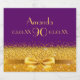 Elegant, classic, glamourous and feminine for a 90th birthday party. A gold coloured ribbon and bow with golden glitter and sparkle, a bit of bling and luxury. Purple background. Templates for a name, age 90, date of birth and date of anniversary and age number. Golden letters.