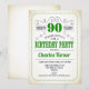 90th Birthday Party - Retro Creamy White and Green Invitation
