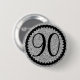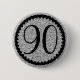 90th birthday party badge with silver glitter.