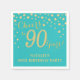 90th Birthday Party Invitation with Teal and Gold Glitter Diamond Background. Gold Confetti. Adult Birthday. Man or Woman Birthday. For further customisation, please click the "Customise it" button and use our design tool to modify this template.
