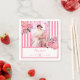 90th birthday pink white stripes floral photo napkin