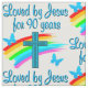 This joy filled 90 year old loves Jesus every day of her beautiful and religious life. This delightful special lady has been loved by Jesus for 90 years. Enjoy this rainbow, cross and butterfly 90 year design on Tees, Mugs, Tote Bags and Gifts. Your lovely and uplifting 90 year old will adore this unique and one of a kind 90th customised birthday gift that she will treasure every year. Celebrate turning 90 with a beautiful 90th birthday prayer. Give the gift of an original 90th birthday design to rejoice in turning 90.