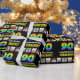 This joyful and bold birthday-themed wrapping paper design features a large number “90“ having a vibrant rainbow spectrum inspired gradient pattern, along with the message “Happy 90th Birthday,“ and a customisable recipient name. There are also some photos that can be personalised, perhaps with photos of the recipient, the recipient’s family and friends, and/or the sender(s) of the gift. Wrapping paper like this might be a fun way of wrapping a birthday present or gift being given to somebody who is celebrating their ninetieth birthday. (Photography © Storytree Studios, Stanford, CA.) [~Z0000670]