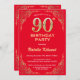 90th Birthday Red and Gold Glitter Frame Birthday Invitation. For further customisation, please click the "Customise it" button and use our design tool to modify this template.