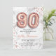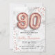 90th Birthday - Rose Gold Balloons Marble Effect Invitation
