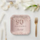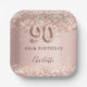 90th birthday rose gold blush glitter name paper plate