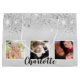 A gift bag for a girly and glamourous 90th birthday. A silver metallic looking background with glitter dust. Personalise and add 3 photos and a name. Number 90 is written with a balloon style font. Perfect as a party favour bag or as a gift bag.