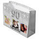 90th birthday silver glitter photo name large gift bag
