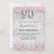 90th birthday silver pink glitter dust invitation