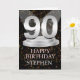 Make a 90th birthday card extra special by adding a name. The number 90 on a plinth with spotlights shining to light it up!