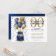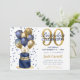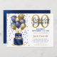This fabulous men's 90th birthday navy blue cake surprise party invitation featuring a 2-layer navy blue and gold cake with navy blue and gold balloons and the number 90 in gold would be perfect for celebrating your husband, brother, dad, friend, uncle, grandfather, great grandfather. It is traditional and classic while being fresh, modern and contemporary. The back is a coordinating navy blue foil.