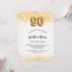 For an elegant 90th birthday party. A chic white background. Decorated with faux gold glitter, sparkles. Personalise and add a name, age and party details. The name is written with a hand lettered style script. Number 90 with balloon style font.