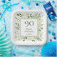 These white hydrangea 90th birthday party/brunch 9" square paper plates are whimsical and stunning! With their watercolor multi-hued white hydrangeas, wispy natural greenery they are perfect for any woman you love. By selecting Personalise this template and typing in your information you can see your gorgeous plates in seconds!