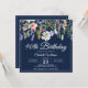 90th Birthday Wildflowers Elegant Navy Blue Floral Invitation