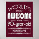 90th Birthday Worlds Best Fabulous Dark Red Poster