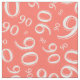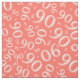 This simple graphic design is a coral and white random number pattern, with the number 90 scattered in varied sizes and angles for an all-over print.