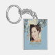 90th Floral Blue Gold Elegant Photo Birthday Key Ring