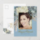 90th Floral Blue Gold Elegant Photo Birthday Postcard