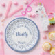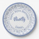 90th Party Random Number Pattern Blue/White Paper Plate