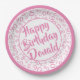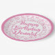 This over-the-hill design has a pink and white random number pattern with a pink milestone number 90 repeated in varied sizes and angles. There is a white circle in the centre for your text and pink-and-white rings around the rim.