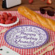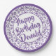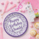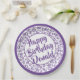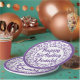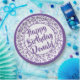 This over-the-hill design has a purple and white random number pattern with a purple milestone number 90 repeated in varied sizes and angles. There is a white circle in the centre for your text and purple-and-white rings around the rim.