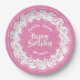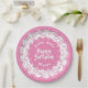 This is a pink and white random number pattern with fancy scallops and custom text. The pink milestone number 90 is scattered over a white background. The design is a very cool fun way to celebrate the past 90 years at your over-the-hill, 90th birthday party.