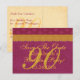 90th Save the Date Birthday Burgundy Gold Lace 003 Announcement Postcard