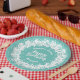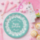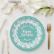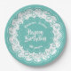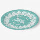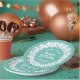 This is a teal and white random number pattern with fancy scallops and custom text. The teal milestone number 90 is scattered over a white background. The design is a very cool fun way to celebrate the past 90 years at your over-the-hill, 90th birthday party.