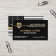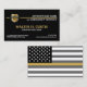 Professional, classy and custom design 911 emergency services dispatcher business cards featuring the black and white flag on the reverse, and a classy silver and gold badge and thin gold line on the front with a rich black background.