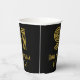 This 1920s-1930s style inspired and vintage style birthday-themed paper cup design features a large art deco inspired look number “91”, plus the birthday greeting message “Happy 91st Birthday,” and a custom name. The background is colored black. Paper cups like this might be used at a birthday party held in celebration of somebody’s 91st birthday. [~Z0000546]