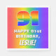 This vibrant and joyful birthday themed paper napkin design features a large number “91” with a colourful rainbow spectrum inspired gradient pattern, along with the message “HAPPY 91st BIRTHDAY,”, and a personalised recipient name. The background also features a fun multicolored rainbow spectrum inspired gradient pattern. Exciting birthday themed paper napkins like this might be used at a birthday party celebrating somebody’s 91st birthday. [~Z0000573]