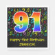 This fun, vibrant, and colourful birthday-themed paper napkin design features a large number "91" having a rainbow spectrum gradient inspired pattern. It also features the message "Happy 91st Birthday,", and a custom name. Part of the background has a pattern of various music notes and symbols having a variety of colours and sizes. Fun, customised paper napkins like this might be used at a birthday party being held to celebrate a musician’s, a singer’s, a composer’s, or somebody else’s 91st birthday. [~Z0000421]